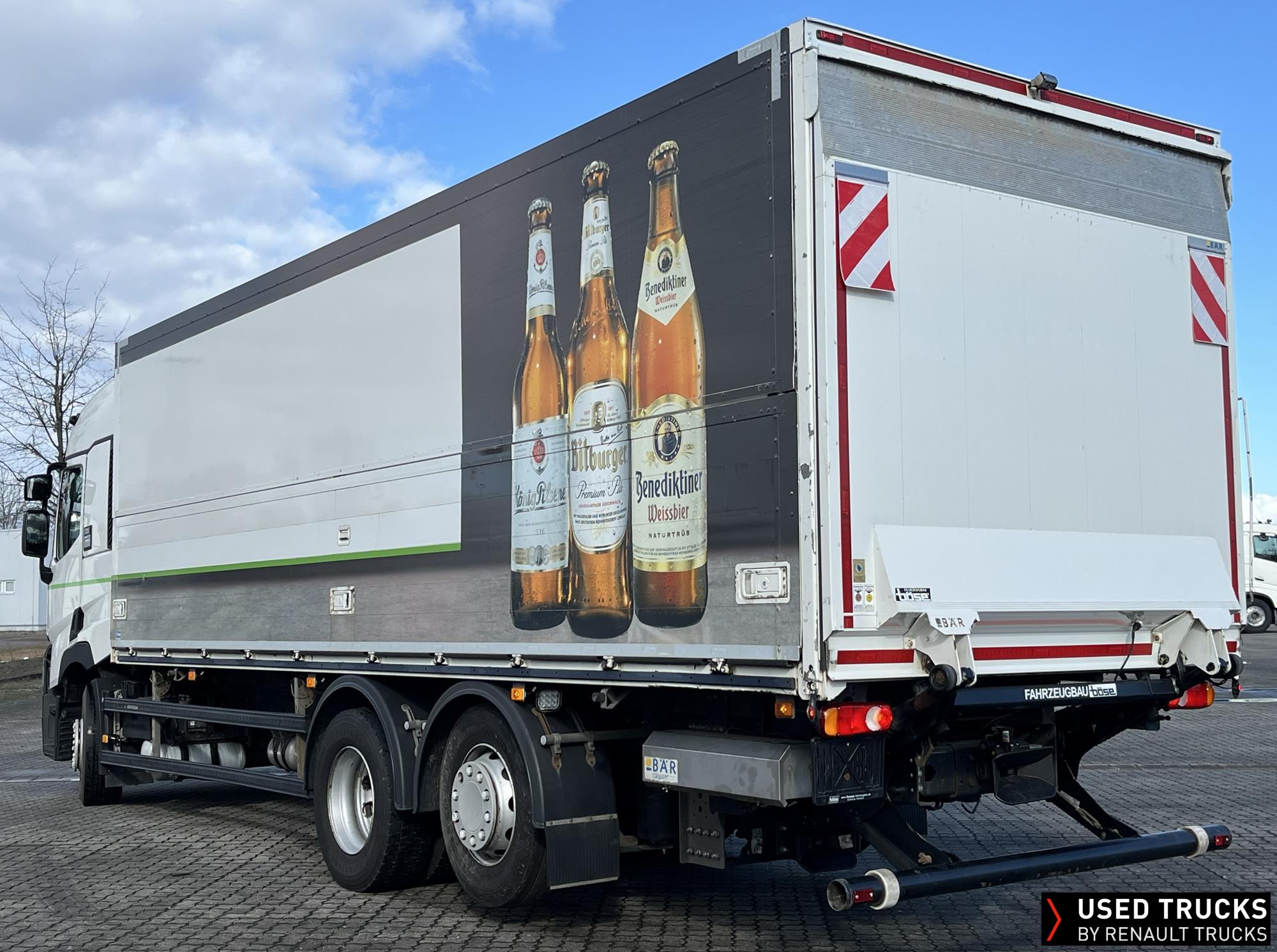 **Verkauf ausschließlich an Transportunternehmen innerhalb der EU / Sales exclusively to transport companies within the EU!**, **Böse Oversider Schwenkwandaufbau Überdach**, **Ladebordwand Bär Typ BC 2.000 S4U**, **Aufbauabmessungen 8.100 x 2.470 x 2.200 mm**, Kraftstofftank - rechts 630 l, **Achsentlastung 11,5t + 30%**, **kamerabasiertes Abbiegesystem**, **weitere Informationen zum Aufbau gern auf Anfrage**