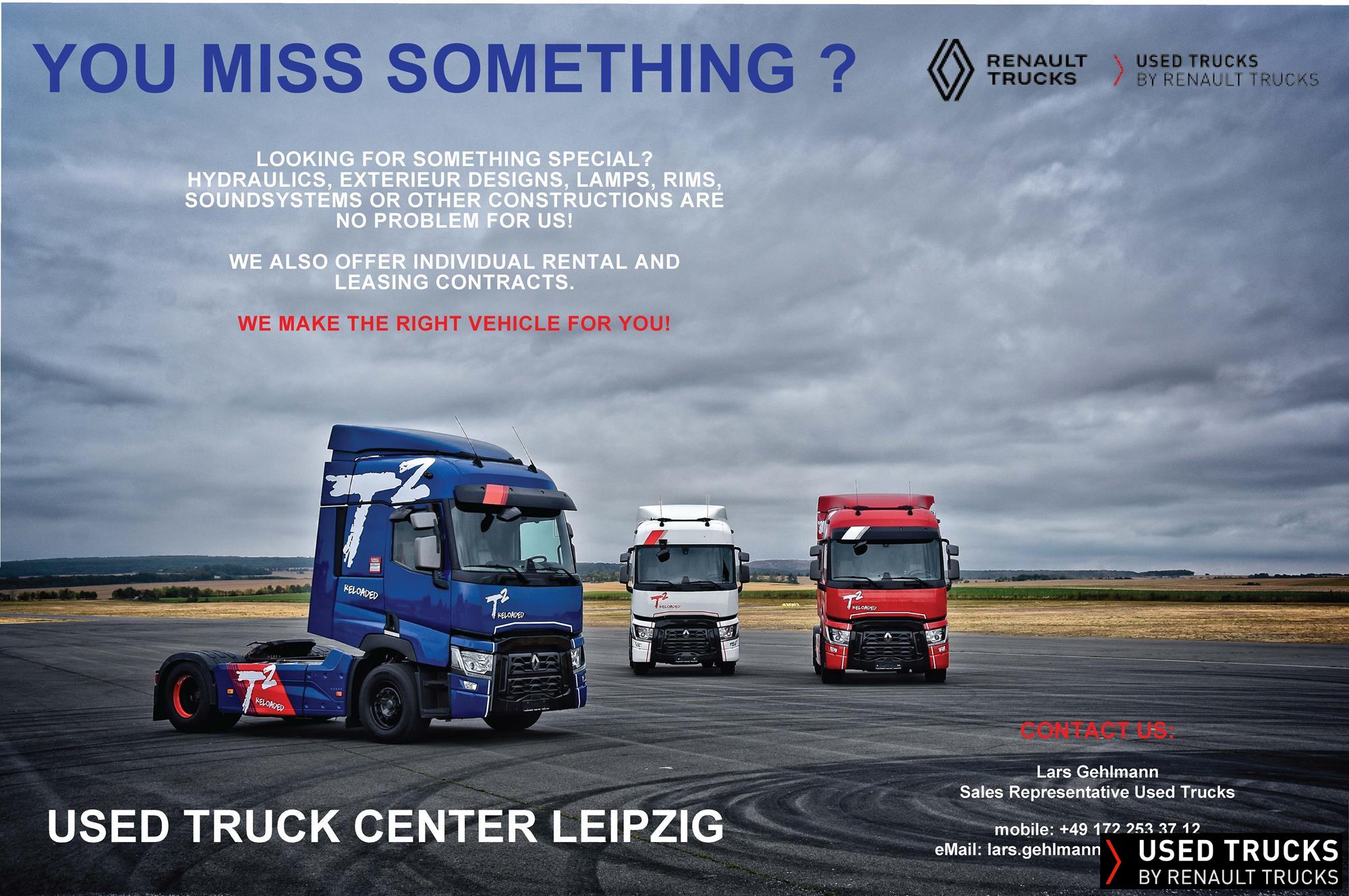 UN RESEAU DE PROXIMITÉParce que nous sommes toujours à vos côtés, vous avez accès à un large choix de véhicules. Vos camions bénéficient d’un suivi personnalisé dans l’ensemble du Réseau Renault Trucks et d’un accompagnement en fonction de vos besoins.