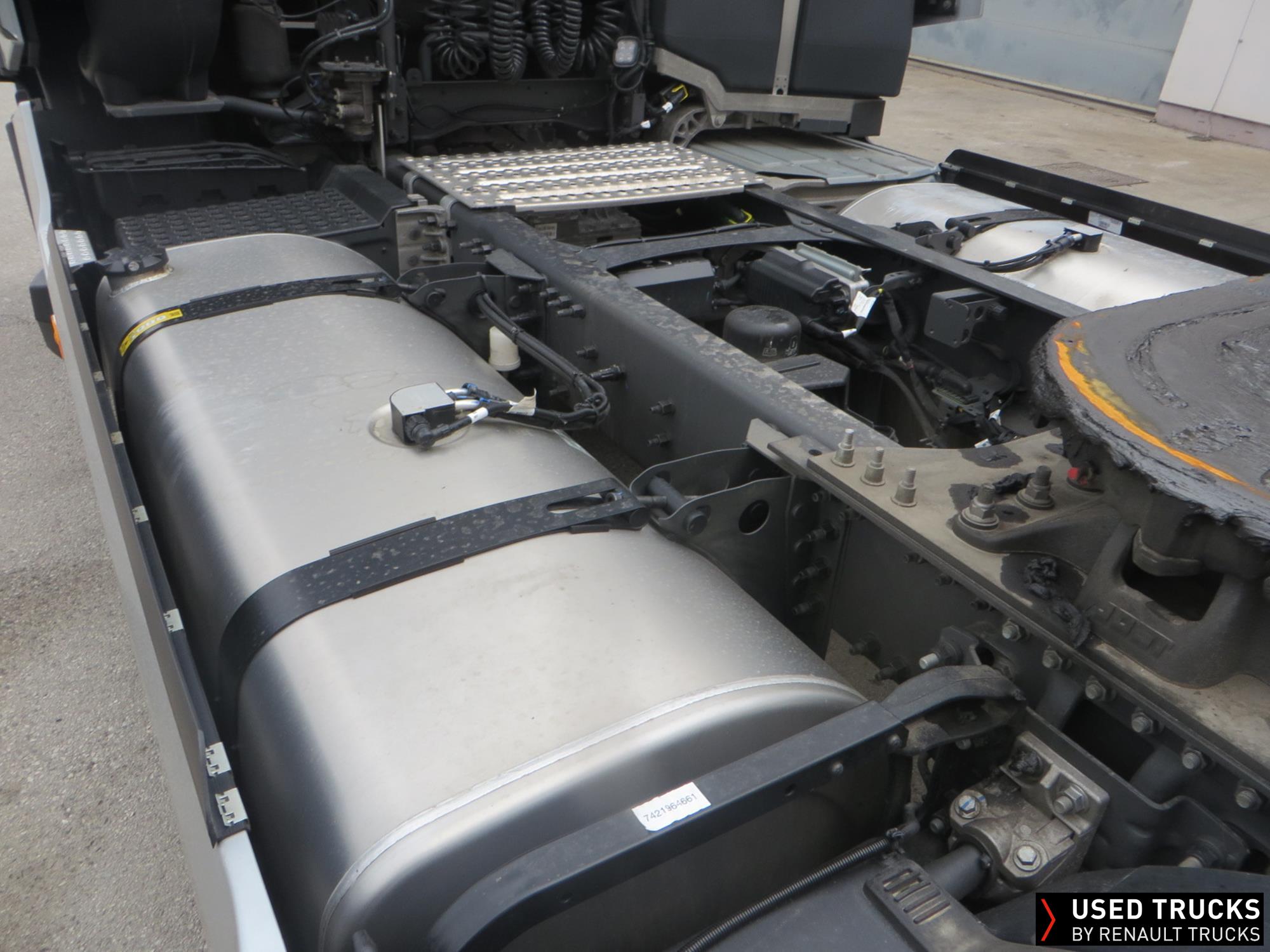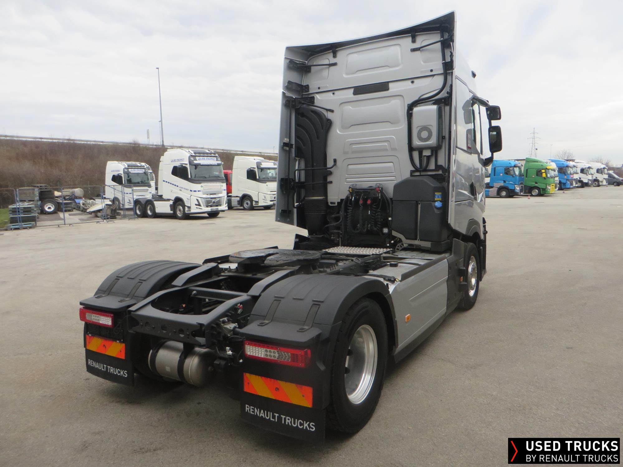 Renault T520 HSC 4x2Tractor Silver star, 9/2025, 52596km, Optibrake+, VOITH Retarder, ADR2, ACC, Fridge, Parking roof klima, Load indicator, Full spoilerset, 650 + 610L fuel tanks, ALU rims Dura-Bright, Luxury seats, Webasto, Air/Air suspension, 385/55R22.5-315/70R22.5, Roof horns, Silver metallic